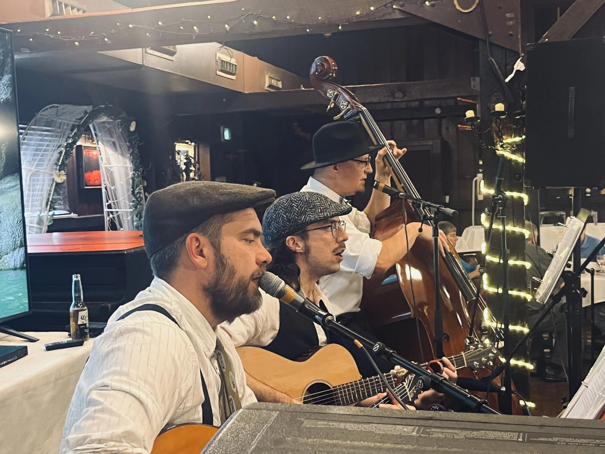 Drawing inspiration from legendary Django Reinhardt and blending seamlessly with Americana and roots traditions, the acoustic trio weaves intricate melodies with hot jazz’s fiery passion.