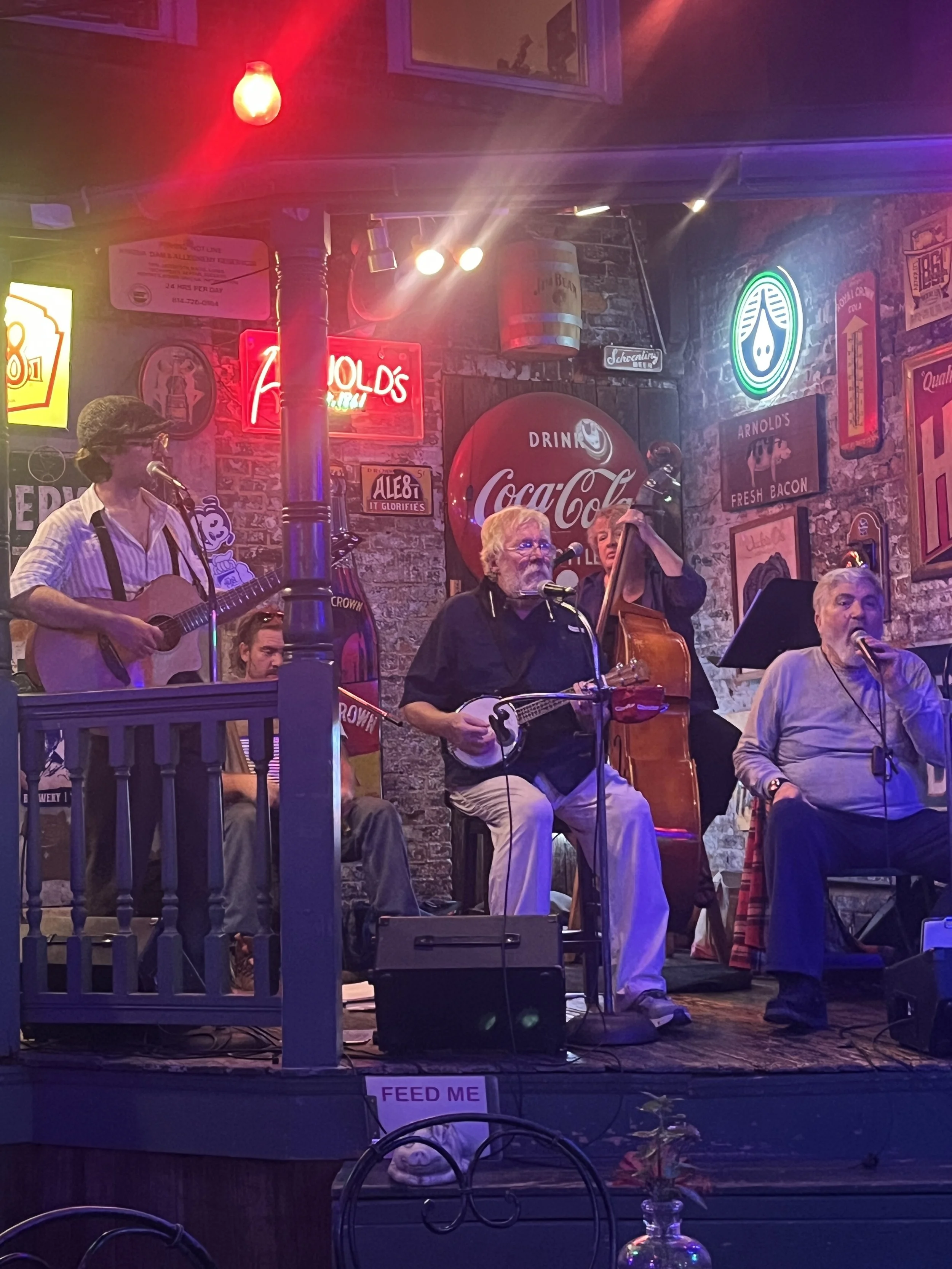 The Cincinnati Dancing Pigs’ regular bi-monthly gig is at Arnold's in downtown Cincinnati. They have performed in every Jug Band Jubilee in Louisville since the inception of the festival, and were inducted into the Jug Band Hall of Fame in 2014.